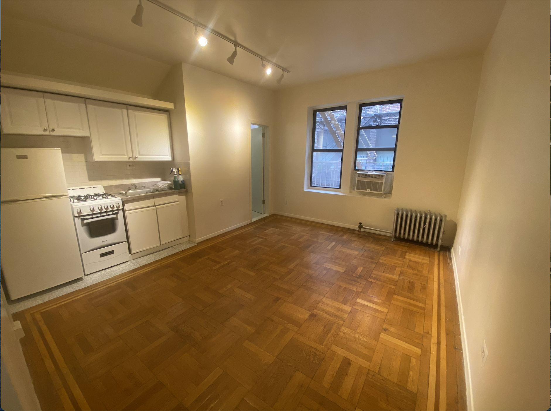 This is a standard sized studio apartment with a linear kitchen flowing into the living/sleeping area. Enjoy a washer/dryer and…