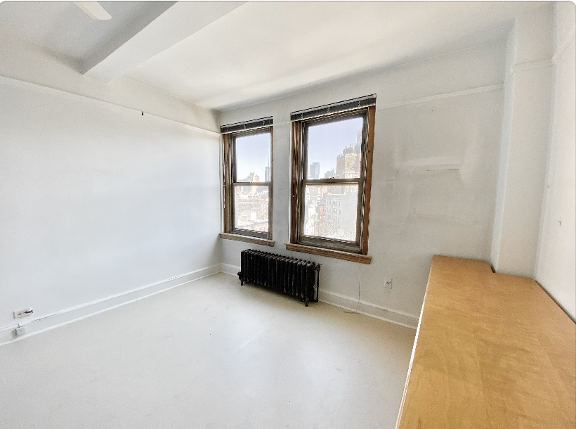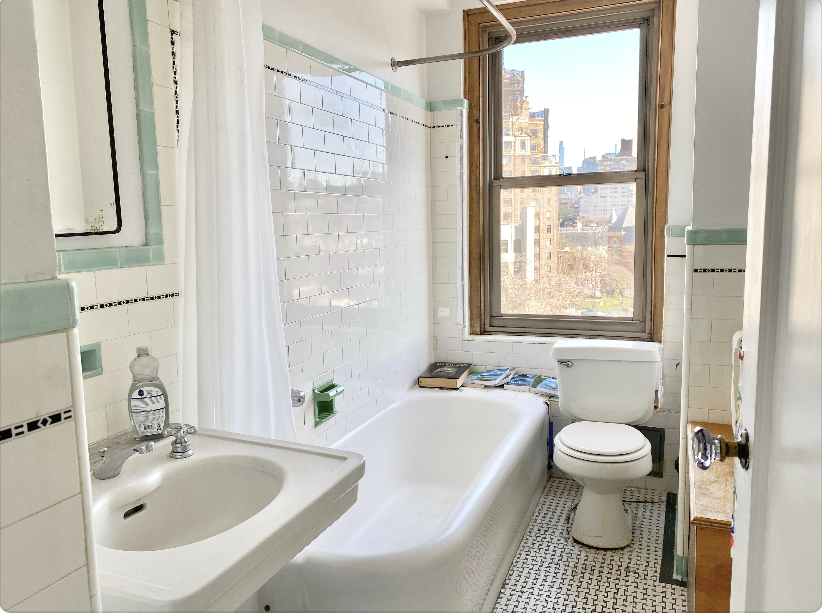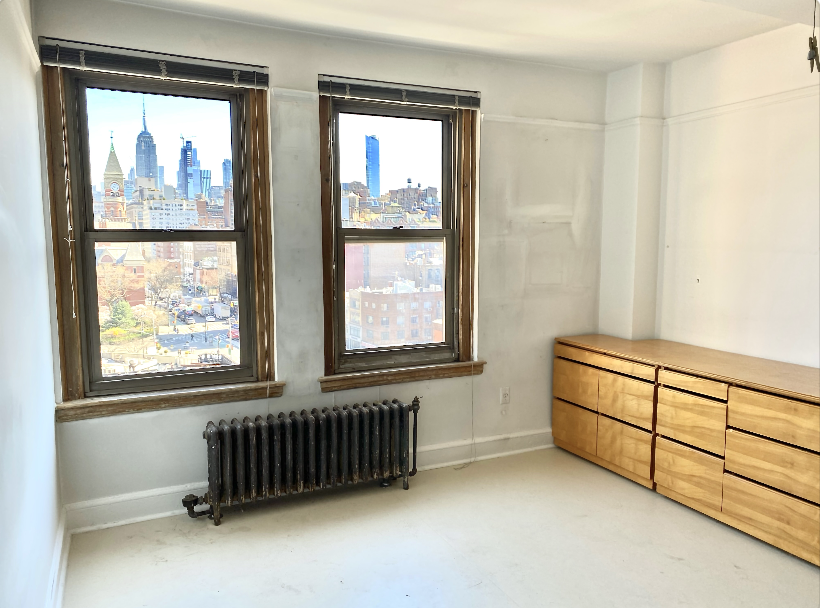 The current floor plan includes a spacious bedroom, a large living area, and multiple closets with ample storage. However, the space lends itself to different layouts–check out our floor plan tour to view the possibilities. The deep, pre-war soaking tub with a direct view of the Empire State Building is a true luxury. There are also two entry doors, enhancing privacy and making this home even more special.
